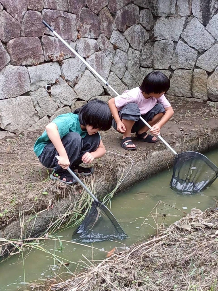 川で釣りや投網でガサガサをしてカメ等の生き物を採取したり、動物を飼育する事で命の大切さを学び、生き物との触れ合いかたや生体の知識を学んでいきます。感受や情緒を育む事で、創造力や表現力を育てます。